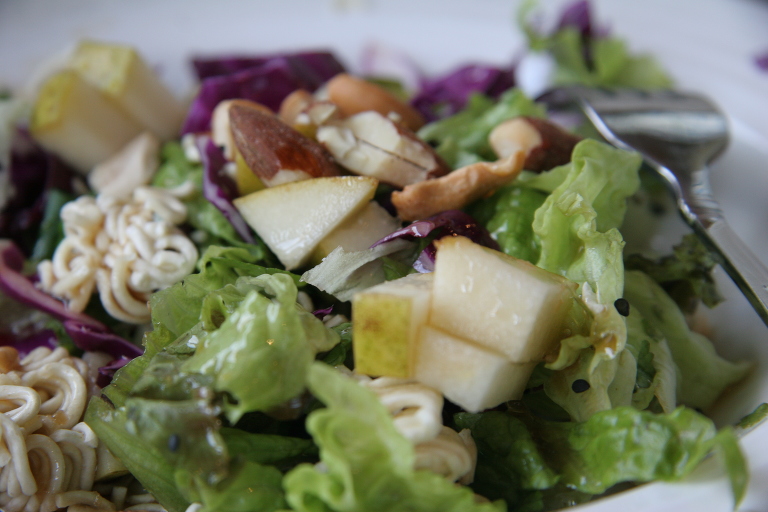 One of my very first salad attempts was an Asian Mandarin Noodle Salad. I bet you know the one… vinegar, oil, and the packet of Ichiban seasoning thrown in… noodles, cabbage, sesame seeds… I thought I was a Cordon Bleu Chef pulling that one off!