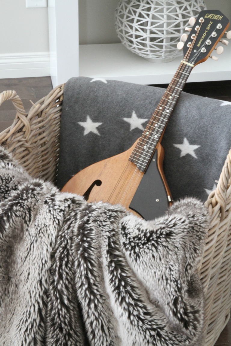 It’s graced by my favourite chaise designed by the lovely Jane Gelinas and my acoustic guitar that made it’s way home again… and fur throws.. lots and lots of them to cuddle in!