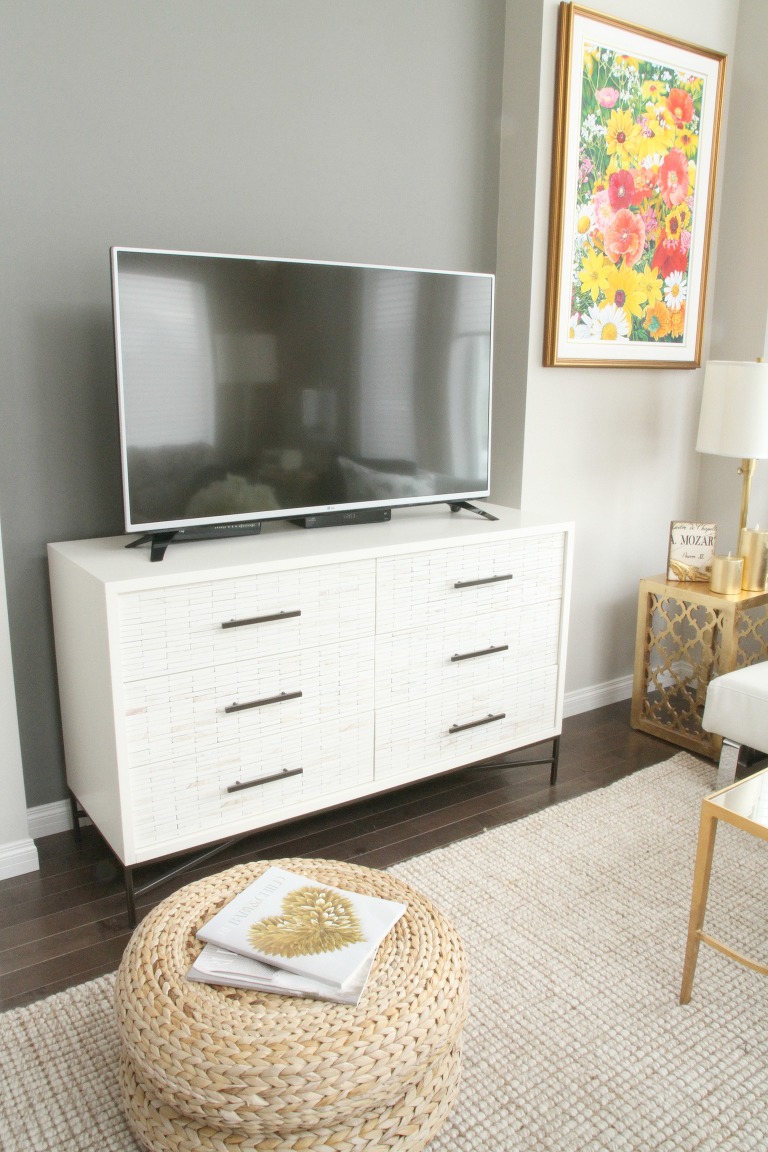 Yes.. I have a television, mostly for Netflix or movie watching and music. Otherwise it doesn’t seem to get turned on much these days. The painting is one of two of my mother’s original pieces.. they are my favourites. This meadow of flowers was hung on the wall at our cabin for a long time, just looking at it transports me back to the summer and time with my family on the water or in the garden.
