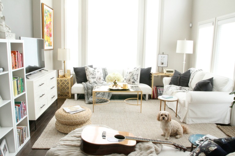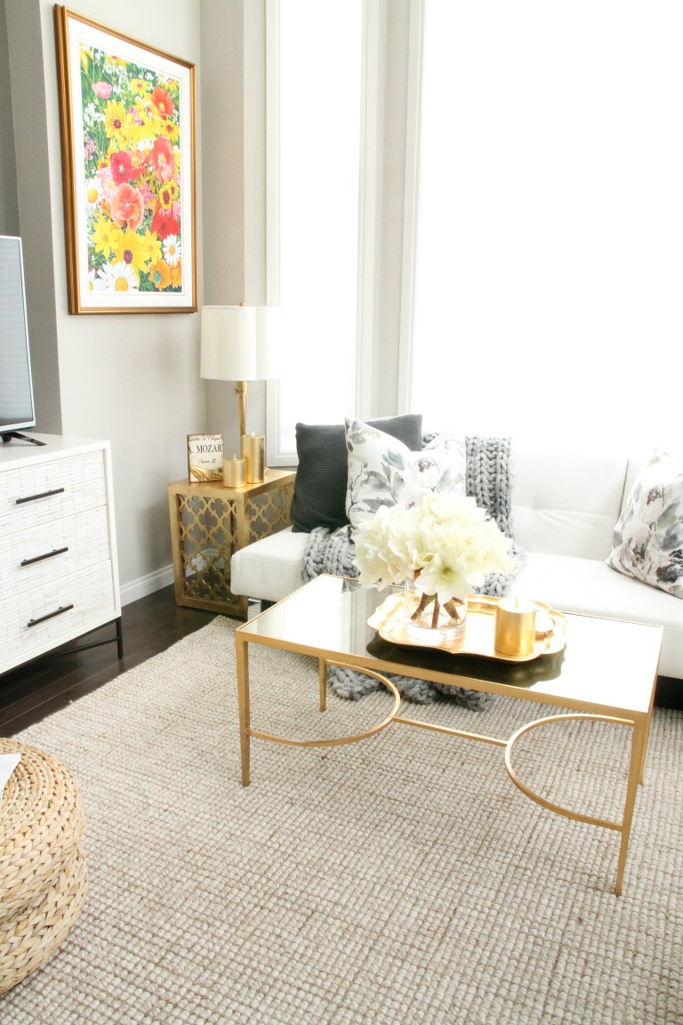 Dawn from Peridot helped me “map out” a plan for my living room. A few pieces came from her shop, almost always on sale, I’ve learned to wait for sales. The side tables arrived in her store with a bend in the legs, so I picked them up for a great price and just turned them sideways. The rug was a treat to myself for a real estate sale last year, ordered from Pottery Barn, it brings a lot of life and light into the room.