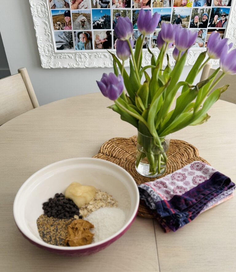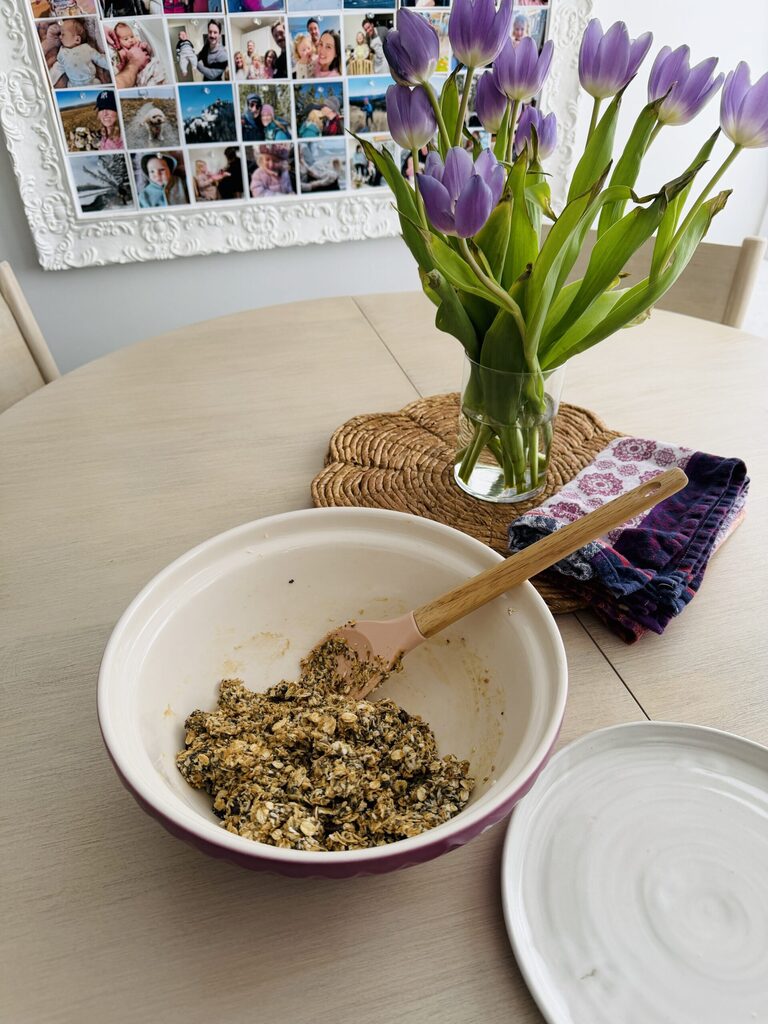 Chia seeds are nutrient dense, high in fiber, protein and Omega 3 fats. Flax seeds give us fatty acids, fiber and lignans. Flax should be ground so I’ll make sure to buy that the next time.
